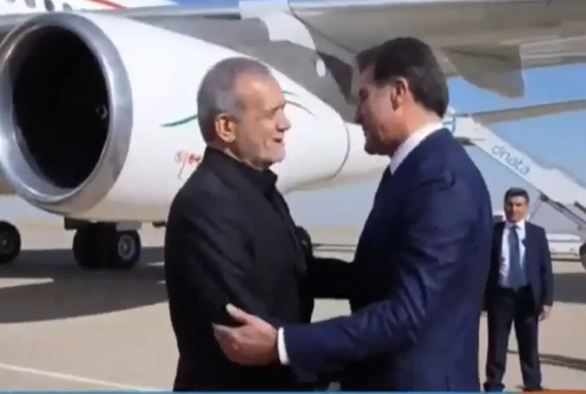 به گزارش جریان نو؛ مسعود پزشکیان رئیس جمهور در دومین روز از سفر خود به عراق، وارد اربیل شد و در فرودگاه مورد استقبال نیچروان بارزانی، رئیس اقلیم کردستان عراق قرار گرفت.